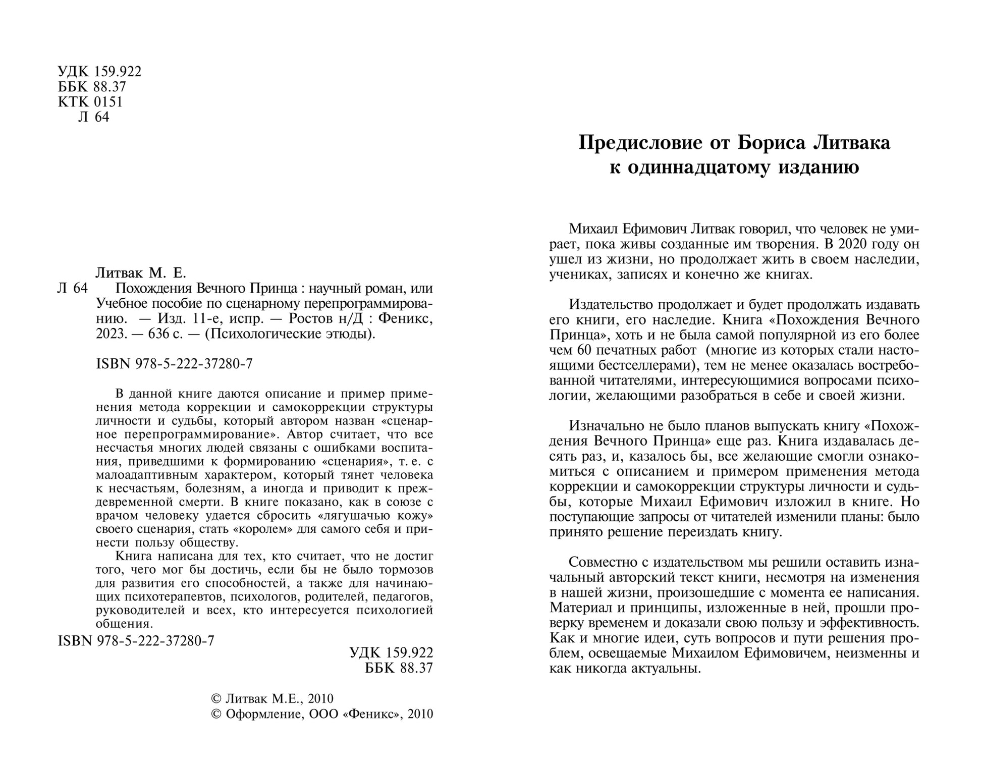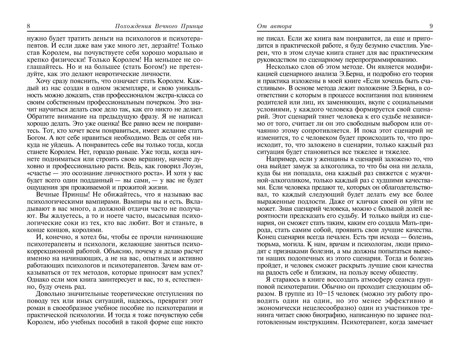В данной книге даются описание и пример применения метода коррекции и самокоррекции структуры личности и судьбы, который автором назван "сценарное перепрограммирование". Автор считает, что все несчастья многих людей связаны с ошибками воспитания, приведшими к формированию "сценария", т. е. с малоадаптивным характером, который тянет человека к несчастьям, болезням, а иногда и приводит к преждевременной смерти. В книге показано, как в союзе с врачом человеку удается сбросить "лягушачью кожу" своего сценария, стать "королем" для самого себя и принести пользу обществу.Книга написана для тех, кто считает, что не достиг того, чего мог бы достичь, если бы не было тормозов для развития его способностей, а также для начинающих психотерапевтов, психологов, родителей, педагогов, руководителей и всех, кто интересуется психологией общения.11-е издание, исправленное.