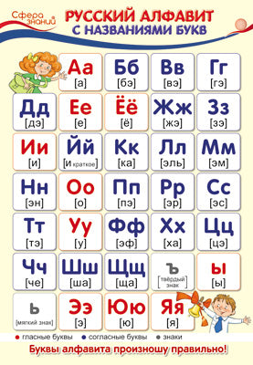 Handling time: 24 days Плакат рекомендован для занятий по русскому языку с учащимися 1-х классов общеобразовательных организаций. Соответствуют ФГОС начального общего образования по учебному предмету «Русский язык». В плакате представлен русский алфавит с названиями букв и правильным их произношением. По традиции гласные буквы выделены красным цветом, согласные — синим, мягкий и твердый знаки — серым. Каждая буква имеет отдельную рамку, что удобно при работе не только с алфавитом, но и с любыми заданиями, требующими составления слов из несколько слогов. Плакат выполнен в удобном формате А3, его легко разместить в классной комнате, также он незаменим как наглядное пособие в домашних условиях.