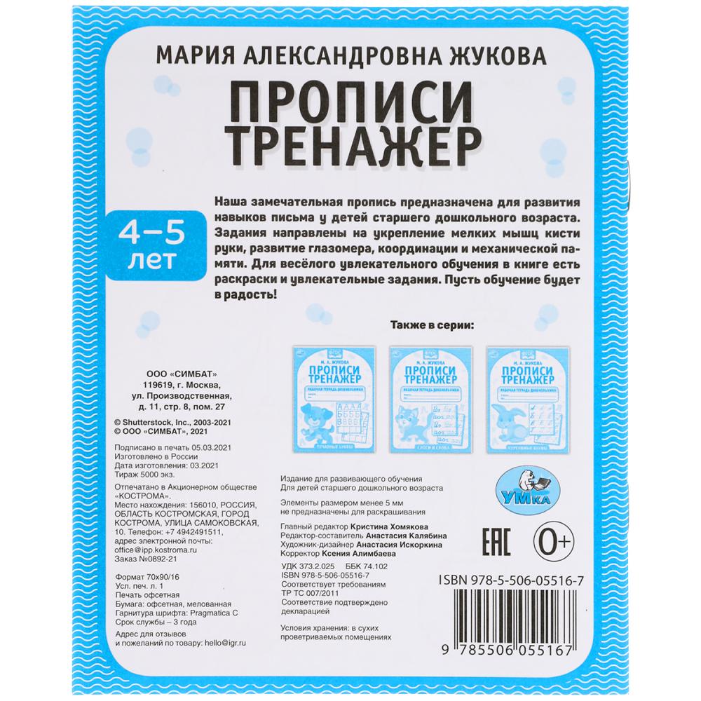 Прописи. М.А. Жукова 4-5 лет. Тренажер красивого почерка. Рабочая тетрадь 16 стр. Умка в кор.50шт