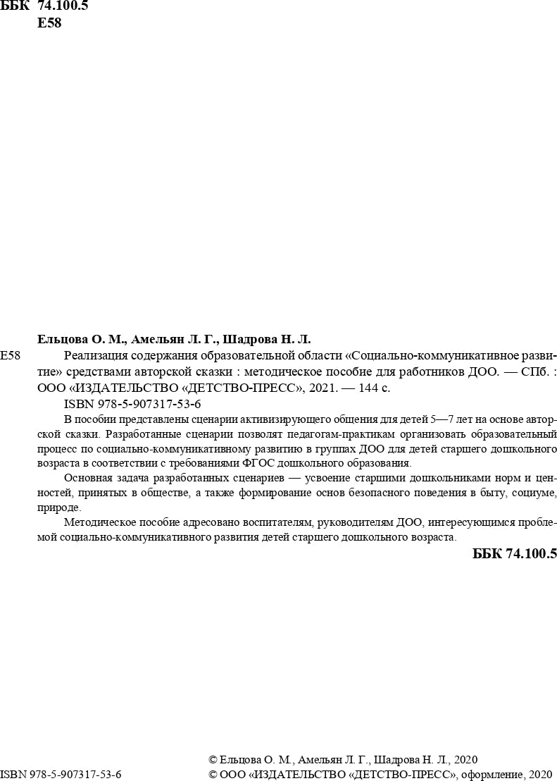 Реализация содержания образовательной области «Социально-коммуникативное развитие» средствами авторской сказки : методическое пособие для работников ДОО. 5-7 лет. ФГОС.