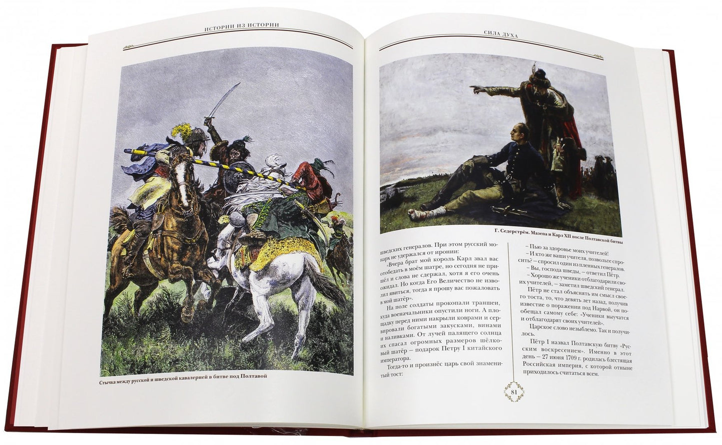 Книга I. О русской армии, великих битвах, защите земли Русской, начиная от Александра Невского. Каждый рассказ, повествуя об отдельном сражении, акцентирует внимание только на самом ярком его моменте, но за счет прилагаемых таблиц, схем и иллюстраций достигается целостное представление обо всем событии. Достоинство книги - доступность и образность изложения материала, уместно увязанного с историческими схемами сражений. В книге представлено 280 работ художников-баталистов.