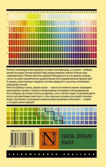 Почему в английском языке предметы не имеют категории рода, а в суахили — наоборот, множество родов? Почему великий Гомер упорно именовал зеленое Эгейское море «винноцветным»? Почему обитатели древнего Междуречья так и не пришли к выводу, считатьли рабов грамматически одушевленными или неодушевленными предметами? И, наконец, какие языковые сюрпризы способны превратить в ад жизнь начинающего переводчика поэзии? Книга Гая Дойчера «Сквозь зеркало языка» — одно из тех немногих научно-популярных произведений, которые становятся литературными сенсациями и международными бестселлерами. Да и может ли быть по-другому, если в этой блестящей остроумной работе автор в шутливой форме повествует о столь серьезных и важных для каждого человека вещах, как влияние, оказываемое языком на наше мышление и ментальность, — а порой и на судьбы целых народов?