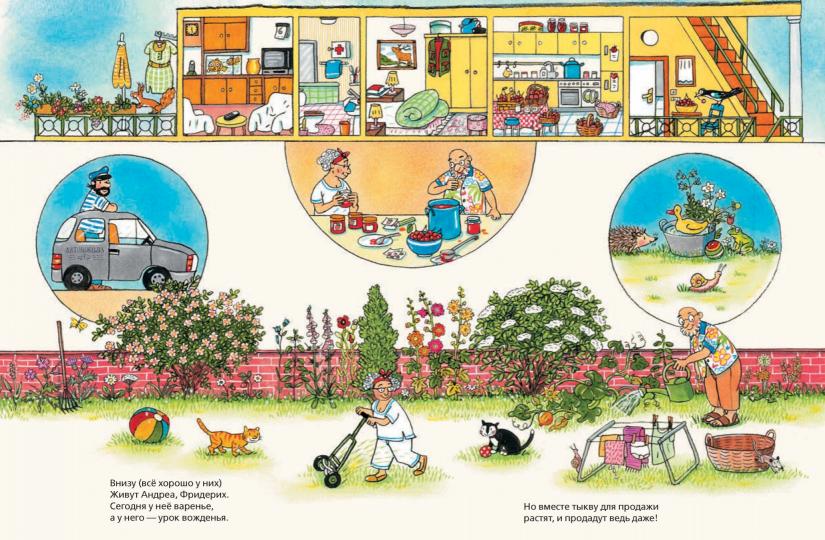 Handling time: 30 days Невероятная новинка Ротраут Сузанны Бернер про обычный день обычного дома в нашем любимом Городке! Мы знаем, как проходит жизнь любимых соседей зимой, весной, летом и осенью, но теперь мы проведём с ними целый день!А ведь в обычном доме Городка всегда что-то происходит! На рассвете под крышу чердака забиваются летучие мыши и мышки-сони, чтобы проспать весь день. Чуть ниже, на мансарде, папа Томас и попугай Нико вместе будят Лену. На втором этаже живут Андреа и Фридерих, они хотят сварить варенье после работы в саду. На первом заново красят стены, в саду играют малыши и кошки, а когда в Городке темнеет, енот-полоскун, ёж и лиса желают всем спокойной ночи! Пять причин купить 1Новинка в легендарной серии книжек-картинок Ротраут Сузанны Бернер. Зимняя и Осенняя книги вышли в «Самокате» в октябре 2010 года и с тех пор вся серия ежегодно допечатывается. 2В легкой веселой стихотворной форме мы узнаем, чем занимаются жители дома в течение дня, а еще под эту книгу можно засыпать! 3Серия «Городок» абсолютный бестселлер в России и мире, эталон книг-виммельбухов. 4Книжки-картинки Р. С. Бернер - прекрасные пособия по обучению детей навыкам составления рассказов по картинке, пересказа, запоминания. 5Серию неоднократно рекомендовали логопеды и педагоги, а ее автор, Р. С. Бернер, получила в 2016 году высшую награду в детской литературе - медаль Андерсона.