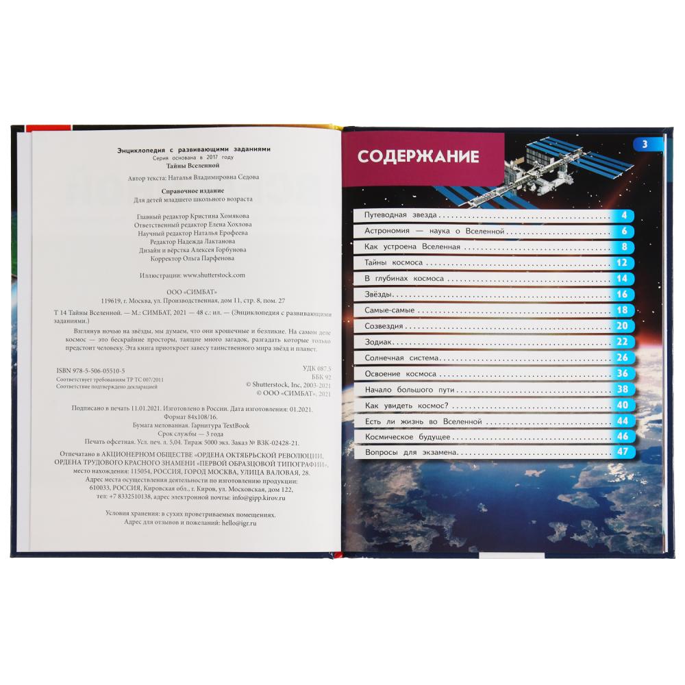 Тайны вселенной. Энциклопедия А4 с развивающими заданиями. 197х255мм, 48 стр. Умка в кор.15шт