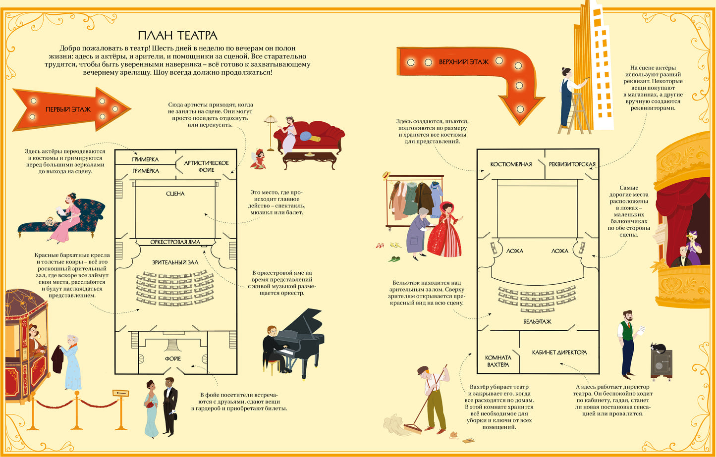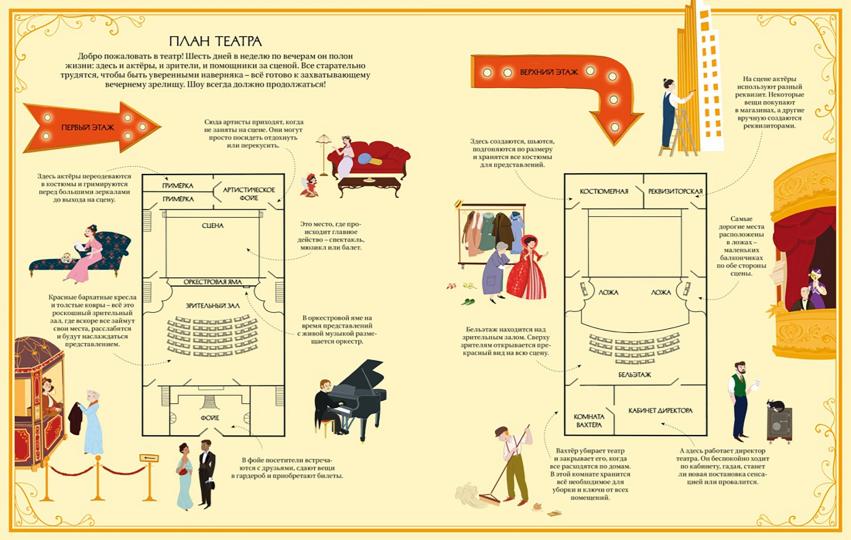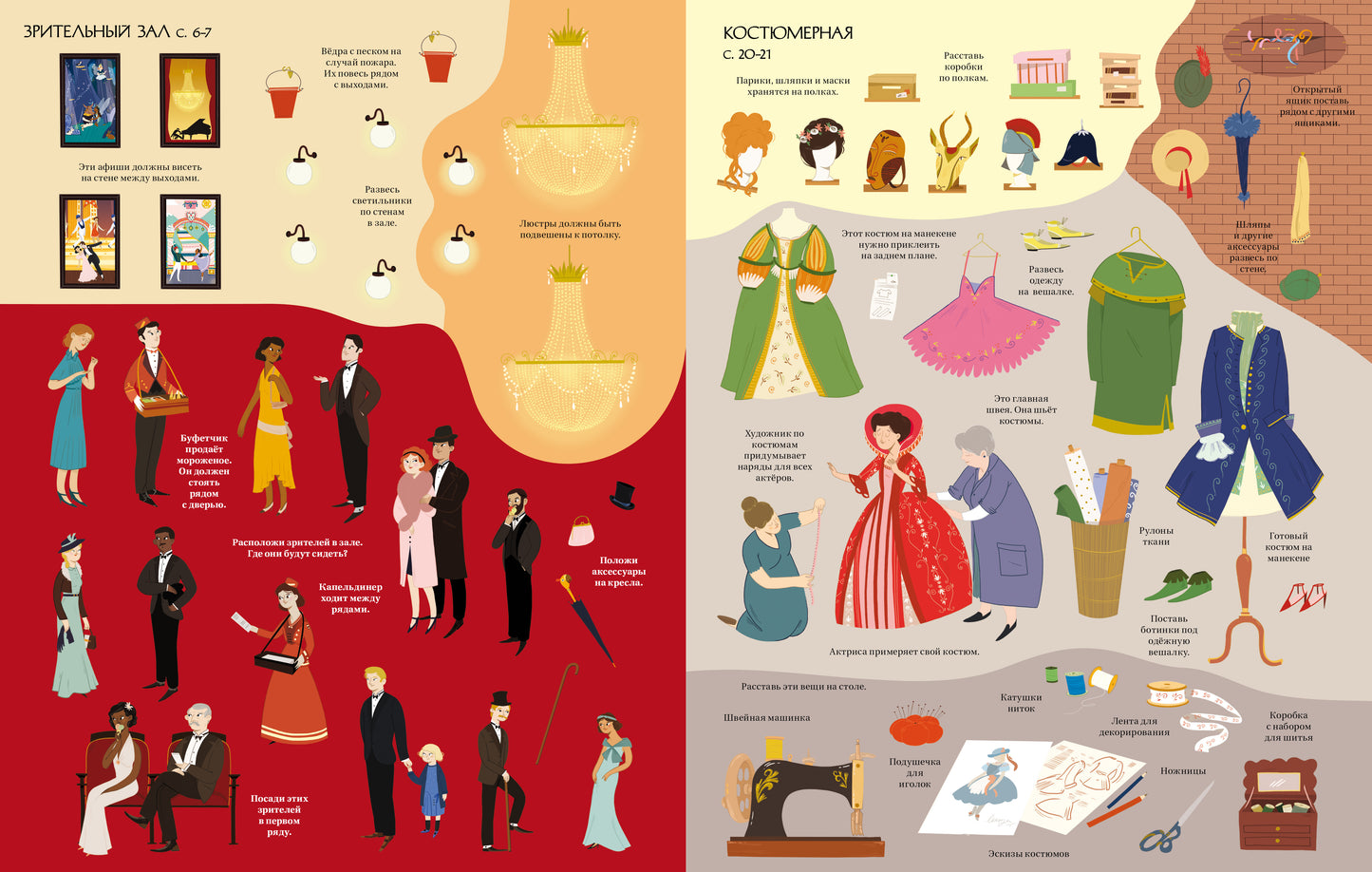 В театре открыт новый сезон, и зал замер в ожидании своих зрителей! Каждый вечер ты можешь смотреть балет, пьесы или мюзиклы – осталось лишь приобрести билет! Тебя ждут незабываемые впечатления от масштабных декораций и удивительных костюмов артистов.Не упусти шанс заглянуть и в театральное закулисье – от гримёрки звезды до костюмерной и реквизиторской – и узнать, как идут приготовления к представлению!Читаем и играем! Развиваем внимание, воображение, мелкую моторику и художественный вкус.Играя с книгами из серии «Супернаклейки», ребенок развивает мелкую моторику, аккуратность и чувство прекрасного. Добрые и яркие картинки интересно разглядывать, а небольшие познавательные истории помогают расширять кругозор маленьких читателей.Книги яркие и качественные: у них плотные страницы, глянцевая бумага и приятная обложка. Ребенок сможет играть с книжкой в течение пяти часов, а благодаря удобному формату взять любимую историю с собой в поездку. «Супернаклейки» точно понравятся и детям, и их родителям!