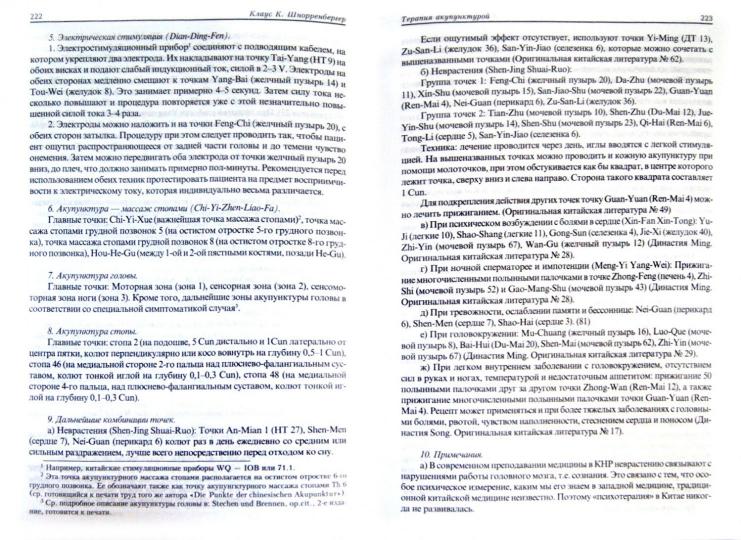 Дидактически книга построена так, что каждая картина болезни обсуждается как с позиций научно-медицинских основ, в смысле современной медицины, так и с позиций определения, этиологии, патологии и диагностики традиционной китайской медицины. Последнее важно, поскольку акупунктура как терапевтический метод тысячелетиями развивалась на базе традиционных китайских медицинских методов и даже сегодня может быть действительно понята только на их основе. С другой стороны, связь традиционной китайской медицины с современной медицинской методикой (объективация, квантификация, точность и т.д.) является предпосылкой, без которой акупунктура сегодня на Западе, как и в Китае, более не применима и едва ли нуждается в упоминании. Поэтому к тексту прибавлена восьмая глава, которая содержит существующие сегодня научные объективации принципа действия акупунктуры в отношении предлагаемых картин болезни. При этом, прежде всего привлекаются результаты Пекинского "Национального симпозиума по акупунктуре, прижиганию и акупунктурной анестезии", проводившегося в июне 1979 г. В книгу вошли: Том 1: Терапия экстренных случаев, инфекционные болезни, внутренняя медицина, детские болезни, неврология, психиатрия. Том 2: Хирургия, урология, ортопедия (включая ревматологию), дерматология, гинекология, помощь при родах.