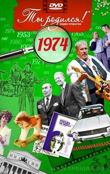 Проект "Ты родился" предлагает вашему вниманию серию подарочных видео-открыток с летописью нашего времени с 1934 по 1994 годы XX века.Коллекционный DVD-диск, который Вы найдете внутри открытки, поможет Вам на время стать свидетелем наиболее ярких страниц жизни нашей страны и мира.Фильм, основанный на уникальных кадрах архивной кинохроники, покажет людей, о которых говорили в новостях, расскажет о главных политических изменениях, о значимых событиях в культуре, новостях кино и интересных биографиях, спортивных достижениях и научных открытиях, благодаря которым этот год остался в памяти.В этом диске мы расскажем Вам о событиях 1974 года.Продолжительность серии 21 минута 40 секунд.