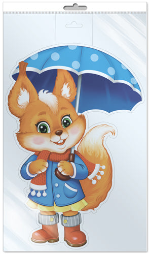 *ФМ1-16291 ПЛАКАТ ВЫРУБНОЙ А4 В ПАКЕТЕ. Осенняя белочка с зонтиком (двухсторонний, в индивидуальной упаковке, с европодвесом и клеевым клапаном)