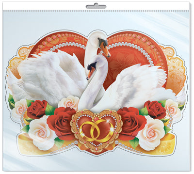 *Ф-11331 ПЛАКАТ ВЫРУБНОЙ А3 В ПАКЕТЕ. Свадебный. Лебеди! - группа Птицы (блестки, в индивидуальной упаковке, с европодвесом и клеевым клапаном)