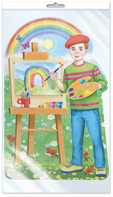 *Ф-15749 ПЛАКАТ ВЫРУБНОЙ А3 В ПАКЕТЕ. Мальчик с мольбертом (двухсторонний, в индивидуальной упаковке, с европодвесом и клеевым клапаном)