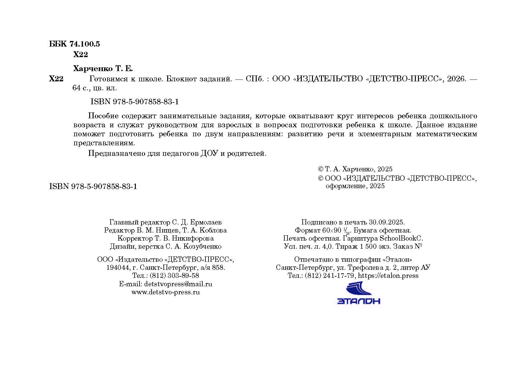 #ASTTD# Search Terms: Харченко Т.Е. , Harchenko T.E. , Детство-Пресс , Detstvo-Press , Вне серии , Vne serii , 9785907858831 , 978-5-907858-83-1 , 2163485