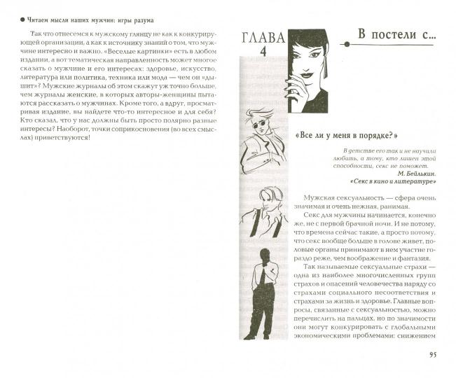 Поэтому постараемся выслушать самих мужчин, которые согласились помочь "перевести" с мужского языка на общедоступный весте нюансы отношений, которые так интересуют женщин. В данной книге главное слово предоставлено именно мужчинам, которые поделились своими размышлениями и дали возможность нам всем понять друг друга.