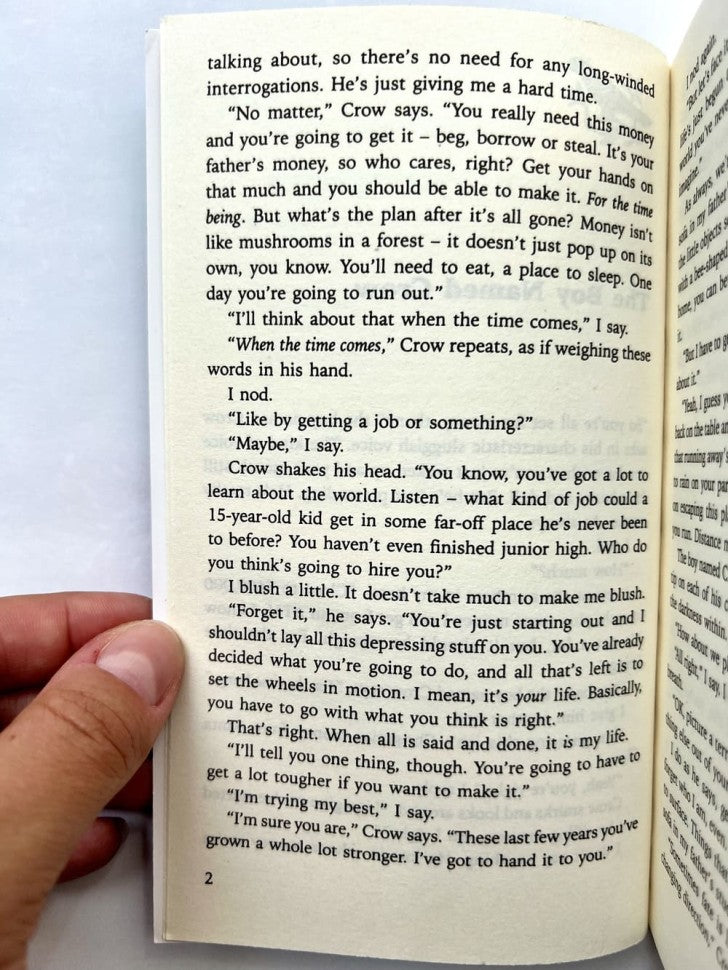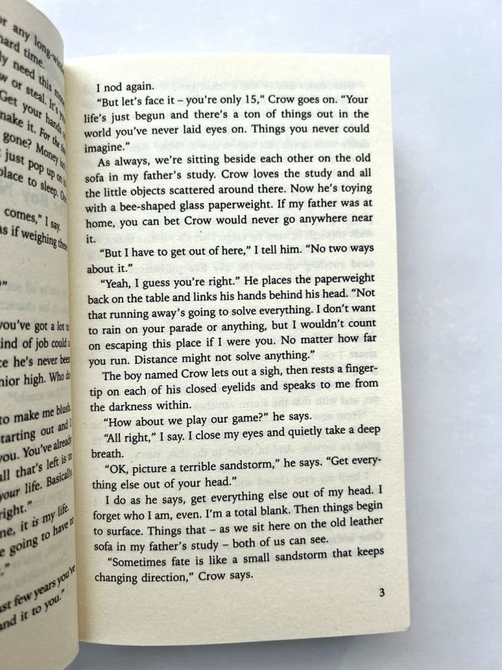 Kafka on the Shore follows the fortunes of two remarkable characters. Kafka Tamura runs away from home at fifteen, under the shadow of his father's dark prophesy. The aging Nakata, tracker of lost cats, who never recovered from a bizarre childhood affliction, finds his pleasantly simplified life suddenly turned upside down. Their parallel odysseys are enriched throughout by vivid accomplices and mesmerising dramas. Cats converse with people; fish tumble from the sky; a ghostlike pimp deploys a Hegel-spouting girl of the night; a forest harbours soldiers apparently un-aged since WWII. There is a savage killing, but the identity of both victim and killer is a riddle. Murakami's novel is at once a classic quest, but it is also a bold exploration of mythic and contemporary taboos, of patricide, of mother-love, of sister-love. Above all it is an entertainment of a very high order. «Кафка на пляже» рассказывает о судьбах двух выдающихся персонажей. Кафка Тамура убегает из дома в пятнадцать лет из-за мрачного пророчества своего отца. Стареющий Наката, охотник за пропавшими кошками, который так и не оправился от странного детского недуга, обнаруживает, что его понятная и простая жизнь вдруг перевернулась с ног на голову. Их параллельные одиссеи дополняются колоритными героями и завораживающими драмами. Кошки разговаривают с людьми; рыбы падают с неба; похожий на привидение сутенер использует ночную девушку, изрекающую гегелевские речи; в лесу укрываются солдаты, которые, по-видимому, не постарели со времен Второй мировой войны. Происходит жестокое убийство, но личность жертвы и убийцы остается загадкой. Роман Мураками — это одновременно и классический квест, и смелое исследование мифических и современных табу, отцеубийства, материнской и сестринской любви.