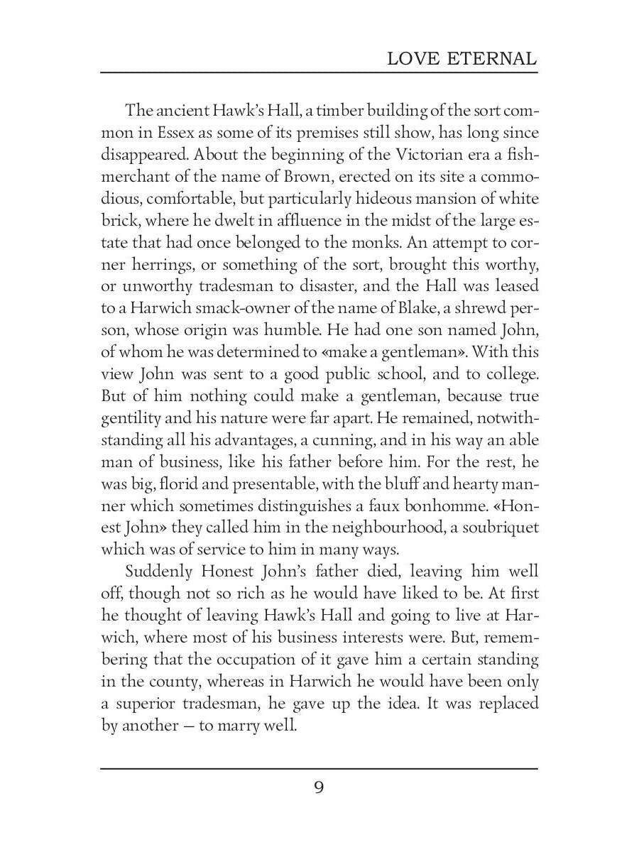 Автор: Haggard H.R., «Love Eternal = Вечная любовь: на англ.яз»: Sir Henry Rider Haggard was an English writer of adventure novels set mostly in Africa, and a founder of the Lost World literary genre. Love Eternal is a story of young Godfrey Knight, the son of a puritanical parson, who lives in the Essex countryside. From childhood on, he and his neighbor, Isobel Blake, the daughter of a wealthy shipping magnate, have been strangely drawn to one another, although their natures are wholly dissimilar. Despite their fathers' many attempts to keep them apart, the two do unite in matrimony, but unfortunately, their earthly happiness is a short-lived one.