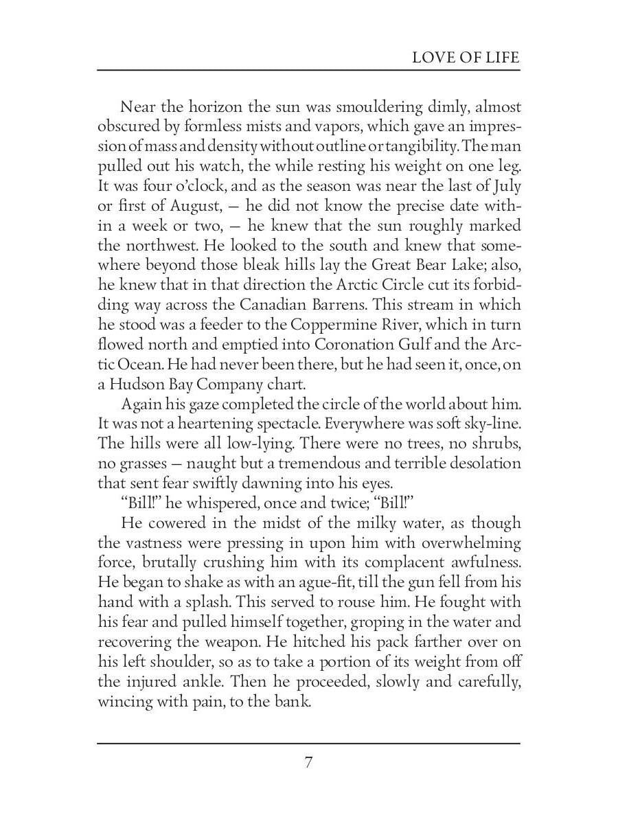 Автор: London Jack, «Love of Life = Любовь к жизни (на английском языке)»: Jack London was an American novelist, journalist and social activist. Pioneering the genre of magazine fiction and prototyping science fiction, he became one of the first writers, who gained worldwide fame and a large fortune. Written mostly during author's "Klondike" period, this volume consists of eight wonderful short stories like "The Story of Keesh," "A Day's Lodging," and "Love of Life" — a story of two gold prospectors, who are suffering from starvation as they trudge wearily across the frozen tundra of Canada to find food.