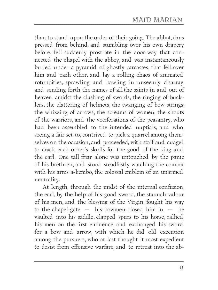 Handling time: 25 days Автор: Peacock T.L., «Maid Marian = Девица Мэриан: на англ.яз»: Thomas Love Peacock (1785—1866) was an English novelist, poet, and official of the East India Company. Peacock's retelling of the legend of Robin Hood is as fresh today as it was when he penned it, nearly two hundred years ago. Here are all the heroes and villains we know and love, recast by a keen Victorian wit Robin Hood and Maid Marian; Friar Tuck, Little John, and Richard the Lionhearted; Prince John and the Sheriff of Nottingham. The heroes are heroic and just a little self-serving, though generous the villains are villainous. The tale is told as keenly as it can be.