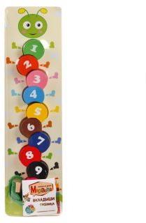 Красочные вкладыши "Гусеница" - это очень интересная игрушка для детей в возрасте от 3-х лет. В набор входит игровое поле, шнурочек и 10 разноцветных деталей с изображением цифр. Задача ребёнка - собрать целую "Гусеницу", продев шнурочек сквозь все 10 деталей. Размер игрового поля (ДхШхВ) составляет 35х9,5х1,5 см. Изделие изготовлено из натуральной древесины.