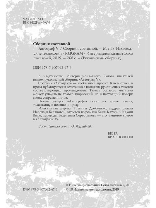 Продавец:Т8 RUGRAM (Интернациональный союз писателей)Обычная цена $26.99 USDОбычная ценаЦена за единицу / заЦена со скидкой $26.99 USDПродано -