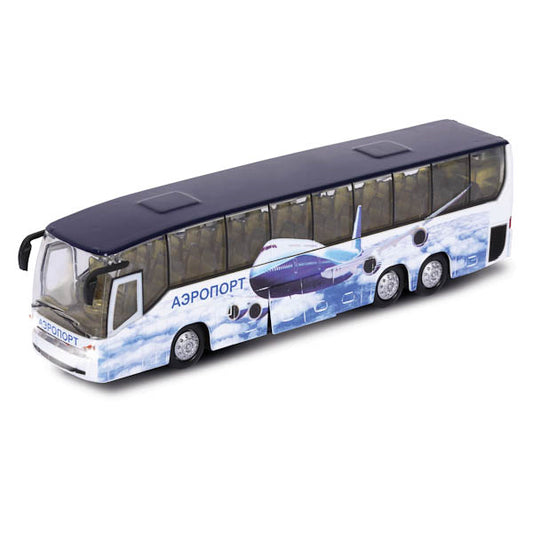АВТОБУС "ТЕХНОПАРК" АЭРОПОРТ, МЕТАЛЛ. ИНЕРЦ. СВЕТ+ЗВУК ОТКРЫВ ДВЕРИ В РУСС. КОР. 18,5СМ в кор.2*24шт