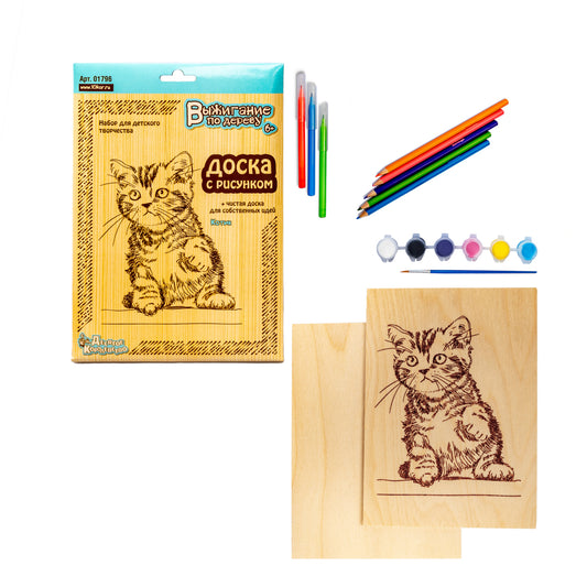 Выжигание по дереву. Доски для выжигания 2 шт "Котик" (блистер)
