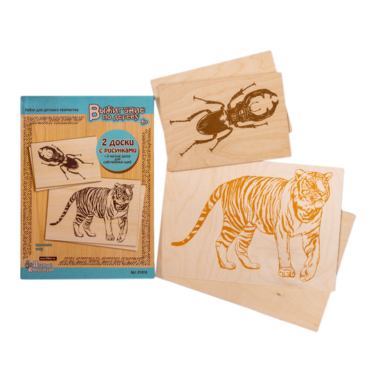 Выжигание по дереву. Доски для выжигания 4 шт "Жук-олень/Тигр" (А4+А5)