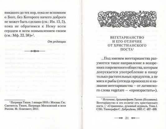 Вегетарианство и его отличие от христианского поста: По творениям святителя Тихона, Патриарха Московского и всея России