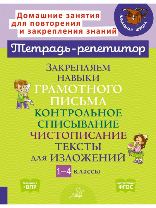 Тетрадь-репетитор. Закрепляем навыки грамотного письма. Контрольное списывание. Чистописание. Тексты для изложений. 1-4 классы. / Стронская.