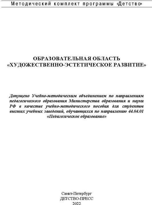Образовательная область "Художественно-эстетическое развитие". Методический комплект программы "Детство" (с 3 до 7 лет). ФГОС.