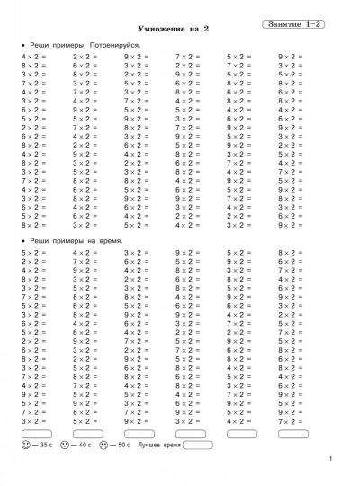 Летние задания по математике. Таблица умножения. 2-3 классы