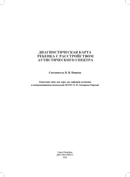 Нищева. Диагностическая карта ребенка с расстройством аутистического спектра. С 2-х лет. ФАОП. (ФГОС)