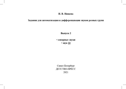Задания для автоматизации и дифференциации звуков разных групп. Выпуск 2. Сонорные звуки и Звук [j]. 5-7 лет. ФГОС.