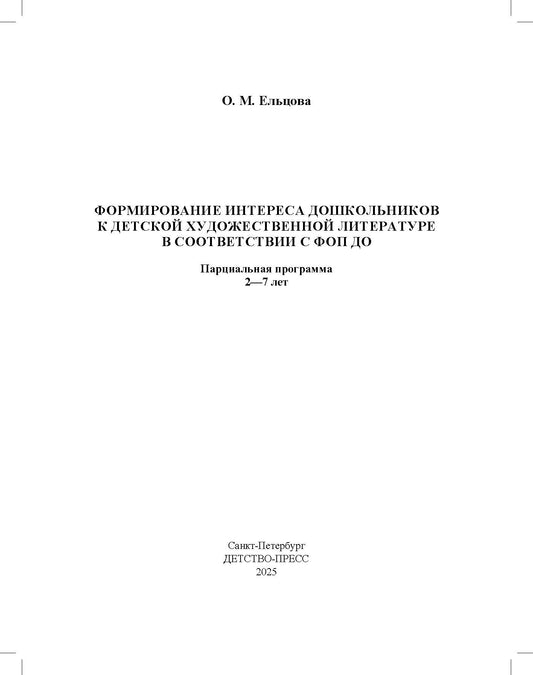 Ельцова. Формирование интереса дошкольников к детской художественной литературе в соответствии с ФОП ДО. Парциальная программа. 2-7 лет. ФОП. (ФГОС)