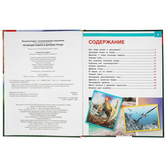 ЛЕТАЮЩИЕ ЯЩЕРЫ И ДРЕВНИЕ ПТИЦЫ. ЭНЦИКЛОПЕДИЯ А4 С РАЗВИВАЮЩИМИ ЗАДАНИЯМИ. 48 СТР. УМКА в кор.15шт