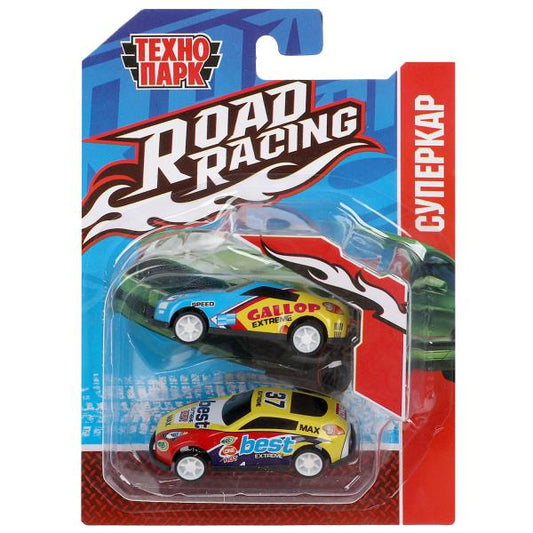 Машина металл ROAD RACING набор 7,5см, 2 шт,металл,в ассорт блистер Технопарк в кор.2*240наб