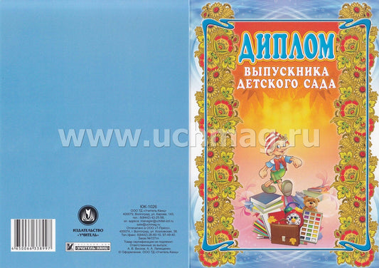 Диплом выпускника детского сада. (Формат А4, 1 сгиб, бумага мелов 250)