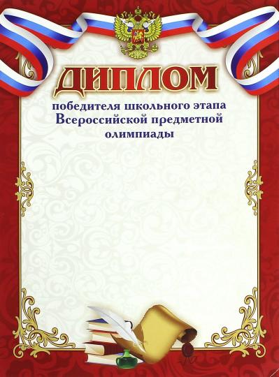 Диплом победителя школьного этапа Всероссийской предметной олимпиады. (Формат А4, бумага мелованная пл 250)