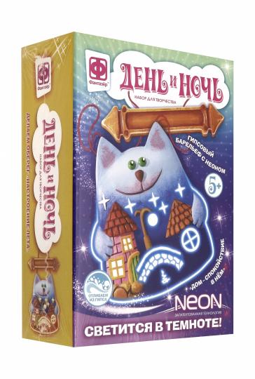 707422 Гипсовый барельеф с неоном "День и Ночь. Дом-спокойствие в нем"