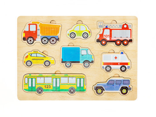 ИГРА РАЗВИВАЮЩАЯ ДЕРЕВЯННАЯ "АВТОМОБИЛИ" (30Х21СМ) в кор.15шт