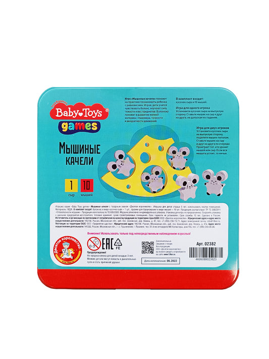 Игра деревянная Балансир "Мышиные качели" в жестяной коробочке серия "Baby Toys games"