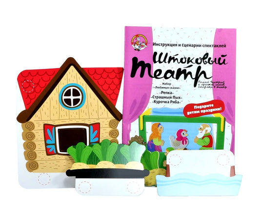 Театр штоковый. Набор кукол и декораций. Любимые сказки. "Репка", "Курочка Ряба", "Страшный Пых"
