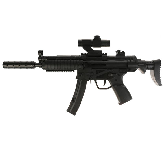 Автомат с лазер. прицелом, с глушителем, съемный магазин, на подставке в пак. в кор.2*24шт