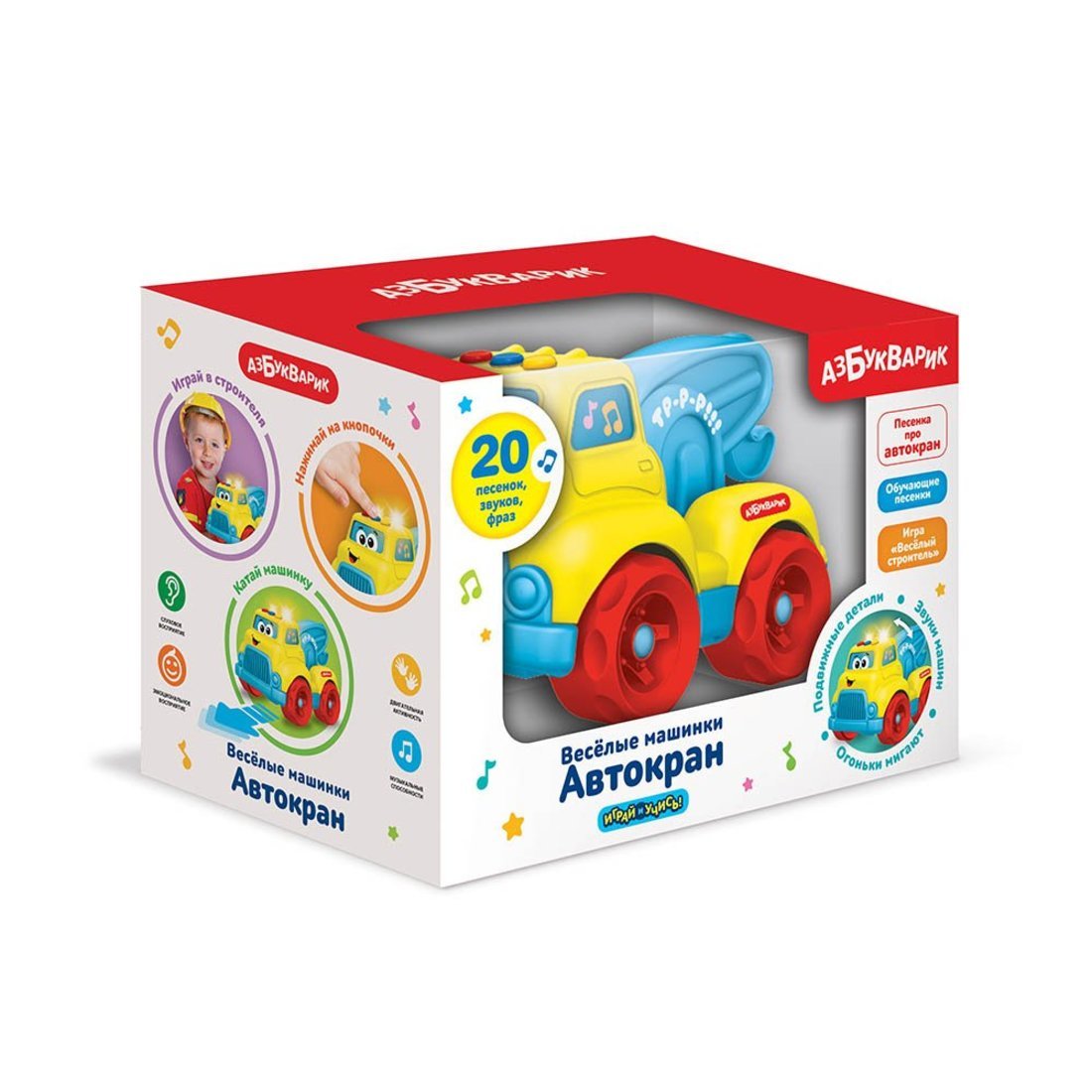 Желтый автокран спешит на стройку и ждет своего водителя! Нажимая на кнопочки, малыш послушает настоящий хит про автокран, познавательные песенки про счет, буквы и светофор. А главное – ребенок сможет поиграть в строителя, выполняя задания под музыку.Рев мотора, сияющая мигалка на крыше кабины, подвижные детали (крюк и стрела) – всё это сделает игру захватывающей и реалистичной! Такая игрушка не просто развлекает ребенка, но и развивает его фантазию, воображение, дает важные знания о безопасности и помогает в социальной адаптации.