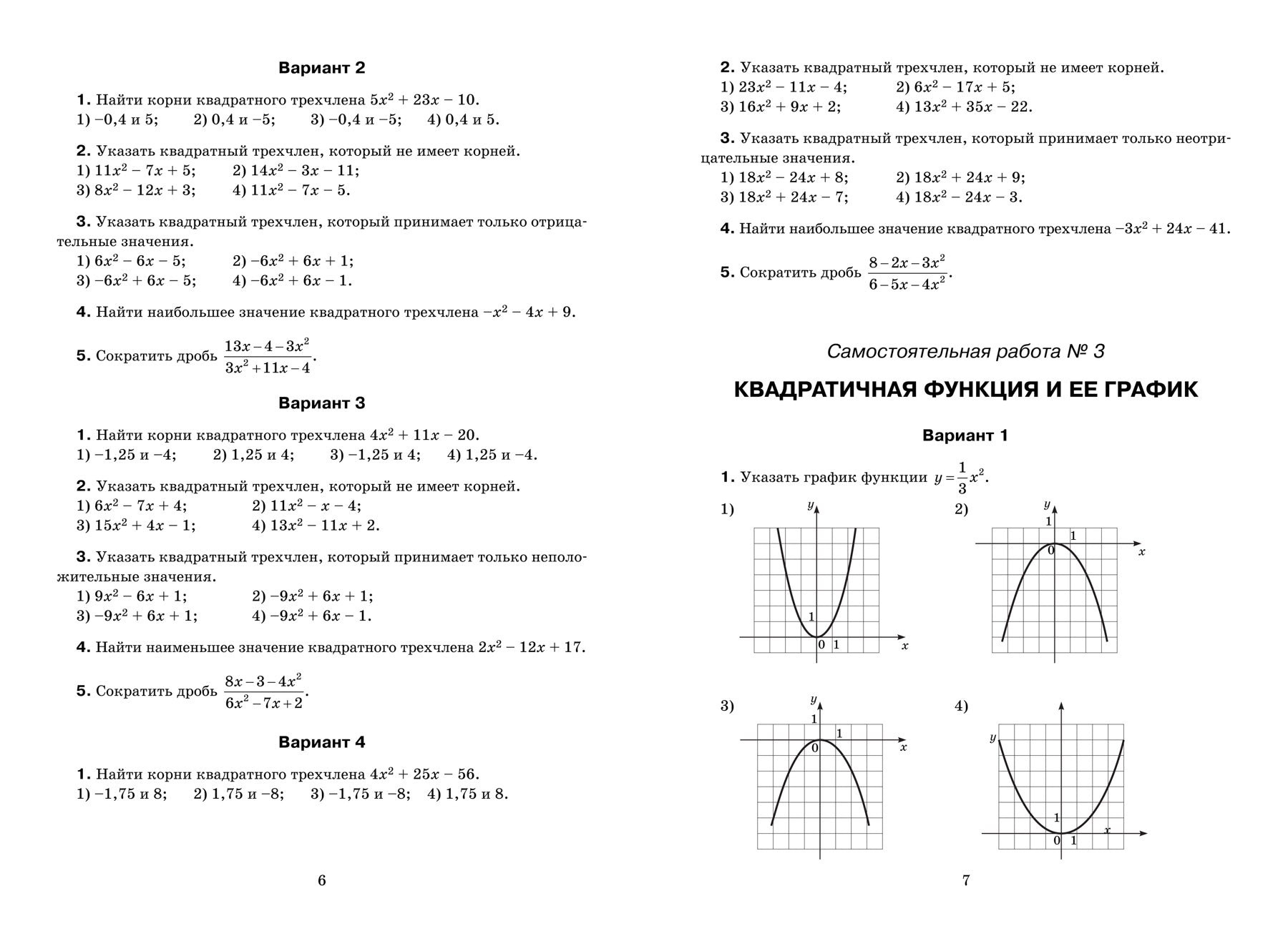 Пособие адресовано как учителям математики, так и учащимся для самоконтроля.