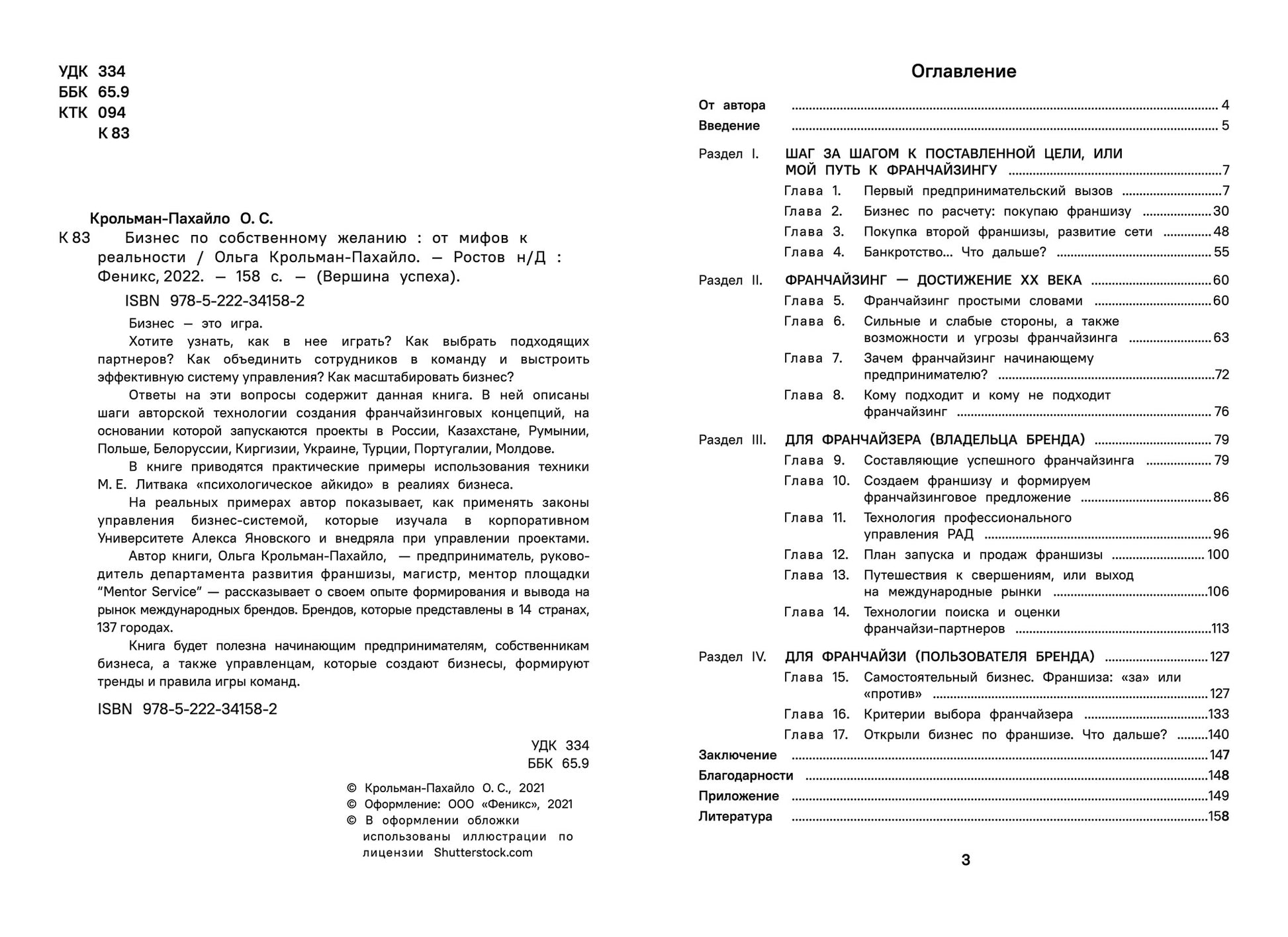 Автор книги, Ольга Крольман-Пахайло, - предприниматель, руководитель департамента развития франшизы, магистр, ментор площадки "Mentor Service" - рассказывает о своем опыте формирования и вывода на рынок международных брендов. Брендов, которые представлены в 14 странах, 137 городах.