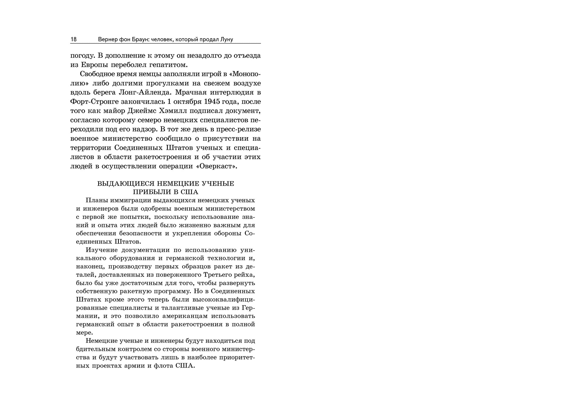 Эта книга о потомке немецких баронов и гениальном конструкторе, который создал для Гитлера самое совершенное по тем временам оружие устрашения - баллистическую ракету "Фау-2". Незадолго до поражения Третьего рейха Вернер фон Браун предложил свой талант и знания победителям и дистанцировался от своих бывших товарищей по нацистской партии. Сначала он предложил себя армии США, а затем - НАСА, а свои мечты о космических путешествиях - миллионам американцев. А еще через десяток лет продал своей второй заокеанской родине Луну. Для широкого круга читателей.