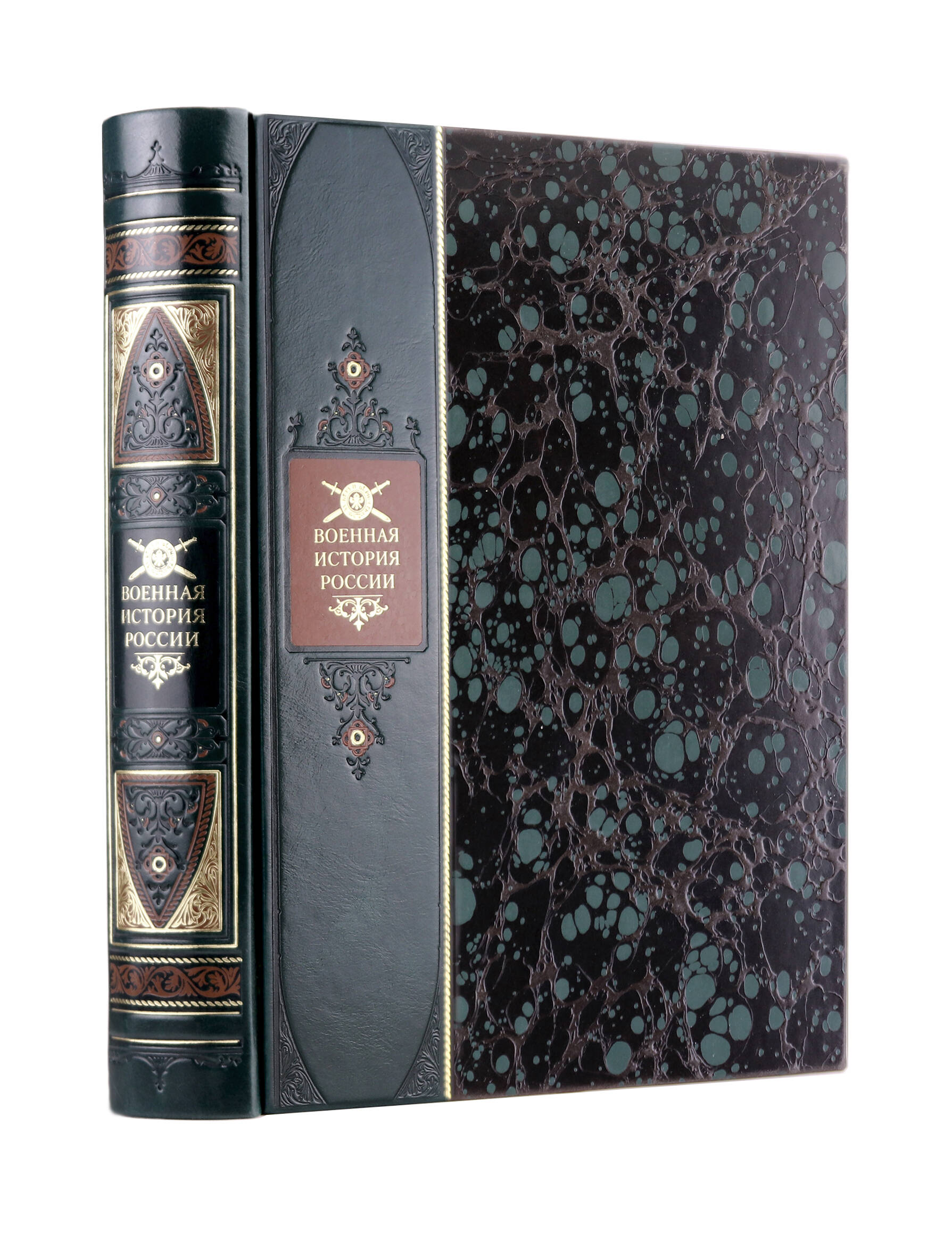 Военная история России. Книга в коллекционном переплете из двух видов кожи с рисунком мраморной бумаги и с изящным тиснением в стиле 19 века.