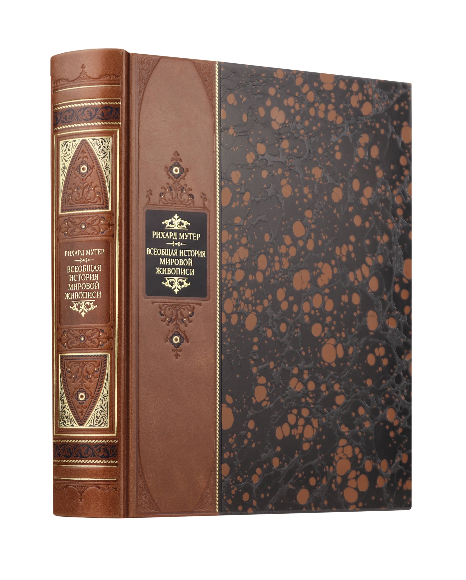 Всеобщая история мировой живописи Рихарда Мутера" Книга в коллекционном переплете из двух видов кожи с рисунком мраморной бумаги и с изящным тиснением в стиле 19 века