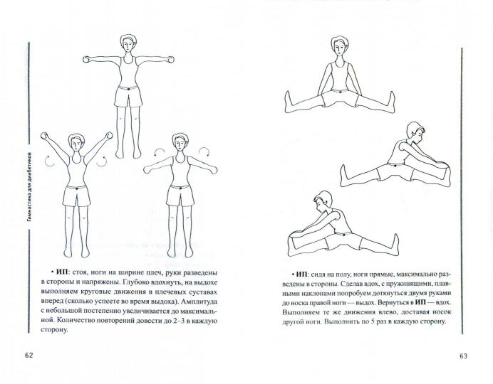 Handling time: 14 days Лечебная физкультура при сахарном диабете применяется в комплексе с другими элементами лечения и играет важную роль в компенсации заболевания. Лечебная гимнастика улучшает жизненный тонус и настроение, позволяет поверить в свои силы. Подобранные специально для вас комплексы упражнений помогут нормализовать все обменные процессы в вашем организме: самое важное - нарушенный углеводный, жировой и белковый обмен. А значит, вы имеете все шансы избежать развития сопутствующих сахарному диабету заболеваний и опасных для жизни осложнений. Исследования подтвердили: физические упражнения при сахарном диабете приводят к понижению уровня сахара в крови, в некоторых случаях - до нормальных величин.