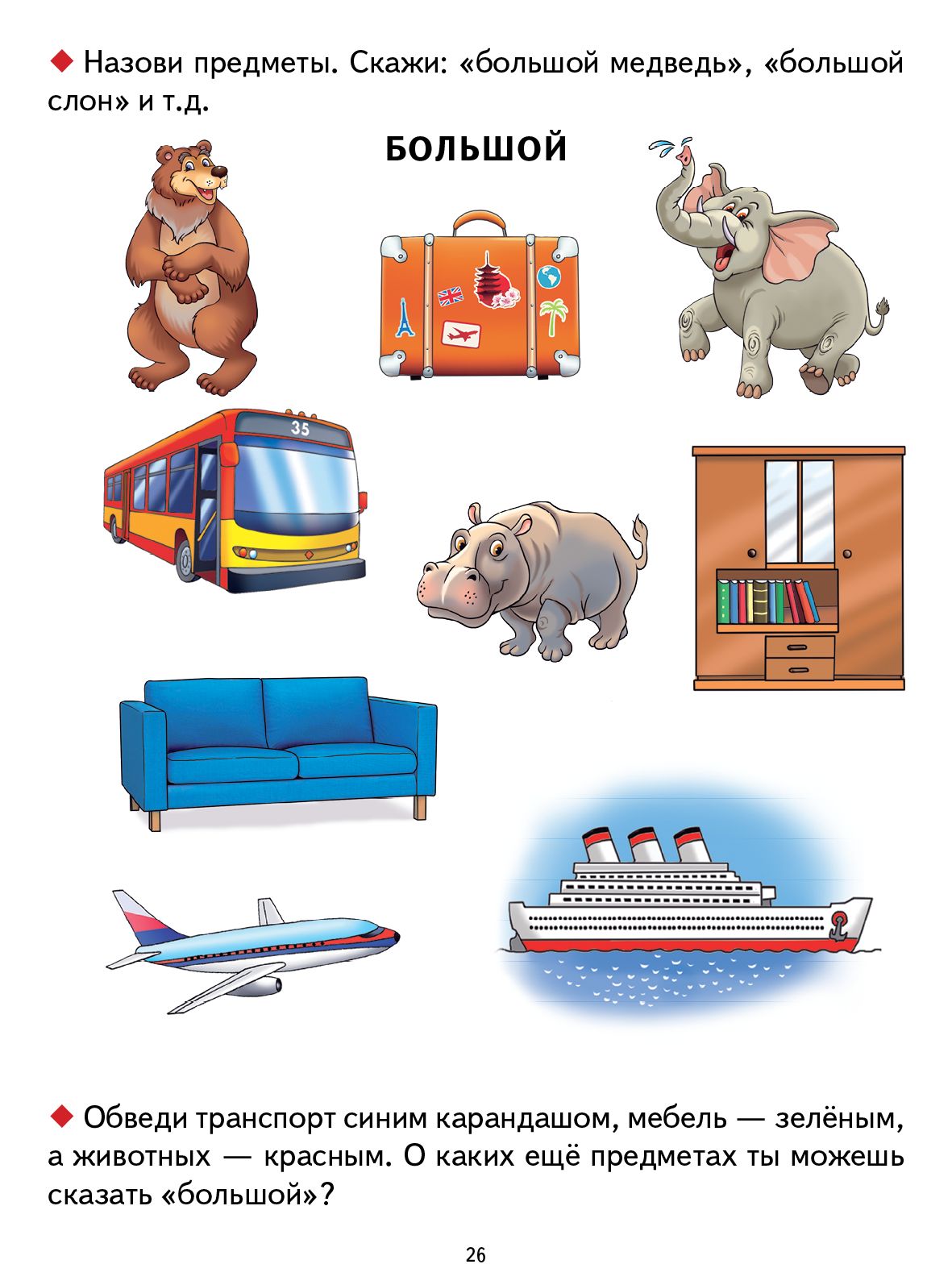 Данное методическое пособие направлено на освоение ребенком грамматического строя русского языка. Работая с предлагаемым материалом, дети научатся: согласовывать существительные с притяжательными местоимениями и с прилагательными в роде и числе; правильно употреблять предлоги; составлять предложения по сюжетным картинкам и вопросам. Тщательно подобранный иллюстративный материал в сочетании с разнообразными вопросами и заданиями поможет ребенку освоить важные умения — слушать и различать слова и словосочетания, а также правильно употреблять существительные в разных падежах, что в дальнейшем, при овладении письмом, позволит предотвратить многие ошибки. Работа с материалами пособия предполагает внимательное рассматривание картинок и их обсуждение, ответы на все поставленные вопросы, игры со словами и рисунками, составление предложений с опорой на картинки. Текст, набранный курсивом, подскажет взрослым, как примерно должны звучать ответы малыша. Пособие адресовано логопедам, воспитателям и родителям. Логопедические занятия с детьми: мнение эксперта – статья на OZON Гид.