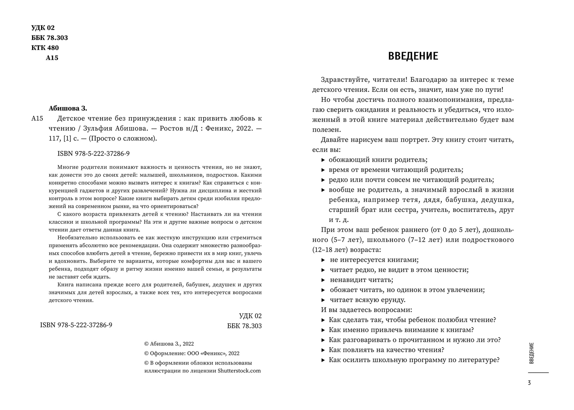 Handling time: 19 days Многие родители понимают важность и ценность чтения, но не знают, как донести это до своих детей: малышей, школьников, подростков. Какими конкретно способами можно вызвать интерес к книгам? Как справиться с конкуренцией гаджетов и других развлечений? Нужна ли дисциплина и жесткий контроль в этом вопросе? Какие книги выбирать детям среди изобилия предложений на современном рынке, на что ориентироваться? С какого возраста привлекать детей к чтению? Настаивать ли на чтении классики и школьной программы? На эти и другие важные вопросы о детском чтении дает ответы данная книга. Необязательно использовать ее как жесткую инструкцию или стремиться применять абсолютно все рекомендации. Она содержит множество разнообразных способов влюбить детей в чтение, бережно привести их в мир книг, увлечь и вдохновить. Выберите те варианты, которые комфортны для вас и вашего ребенка, подходят образу и ритму жизни именно вашей семьи, и результаты не заставят себя ждать. Книга написана прежде всего для родителей, бабушек, дедушек и других значимых для детей взрослых, а также всех тех, кто интересуется вопросами детского чтения.